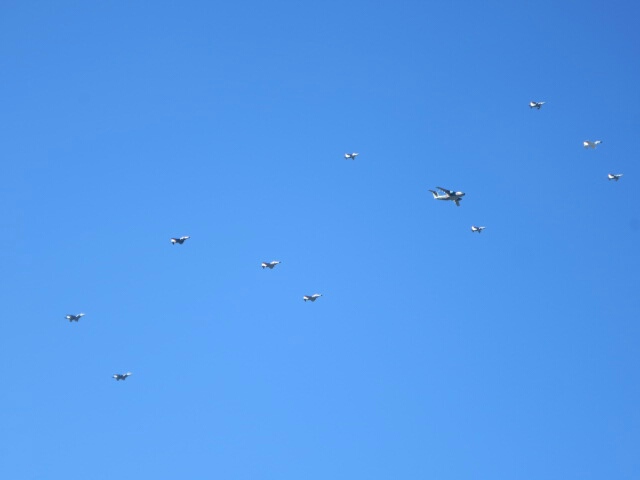 コスモス畑で偶然自衛隊の飛行訓練を見つけました。